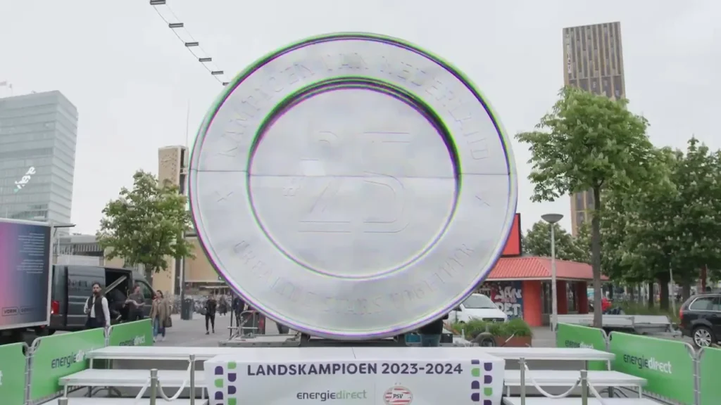 Omdat het voetbal seizoen 2023-2024 afstevende op een jubileum kampioenschap voor onze club PSV, kwam de hoofdsponsor, energie direct via onze partner, Vormgenoten naar ons toe om te vragen of wij hier een extra memorabele editie van konden maken. Door een levensgrote schaal van 7 meter hoog te maken voor dit grootse feest. In opdracht van de klant hebben wij gekeken naar de maakbaarheid, inclusief de haalbaarheid van plaatsing op locatie. In samenspraak met onze constructeur zijn wij aan de slag gegaan met de volledige productie van dit fantastische project.