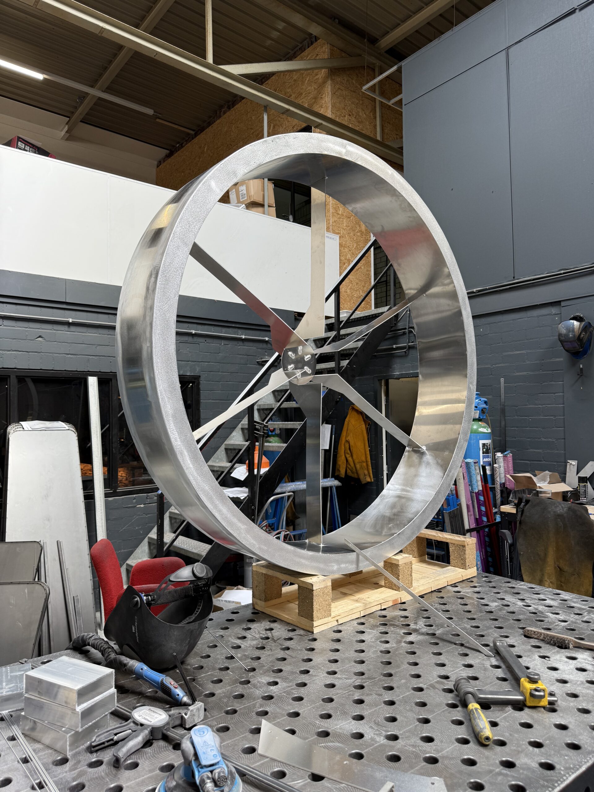 Vanuit een eerste ruwe conceptschets verzorgde ons team de volledige technische ontwikkeling én het projectmanagement. Het resultaat: een levensgrote metalen drone met een high-end afwerking, een project waar we met trots op terugkijken!